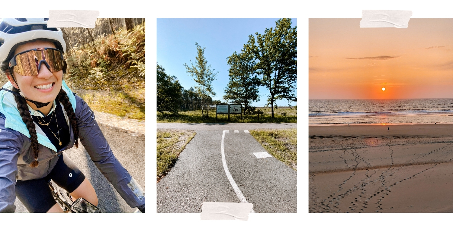Le deuxième jour, le départ se fait à 8h30 sous les premiers rayons de soleil perçant à travers la forêt. Cette étape entre Mimizan et Contis reste ma préférée : le parcours est vallonné et l’arrivée sur le phare de Contis, qui surgit au détour d’un virage, est tout simplement majestueuse. Je ne vois pas le temps défiler.